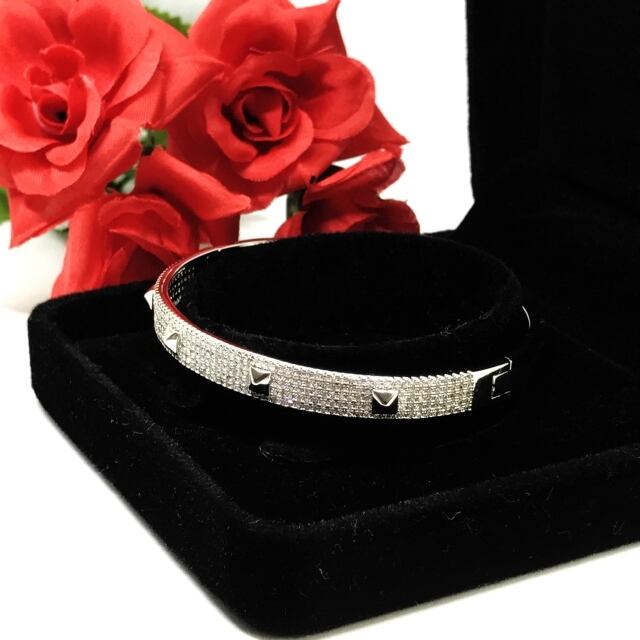 贅沢に散りばめたダイヤとスタッズの夢なコラボレーションがアレンジする高貴なデザインのブレスレット。