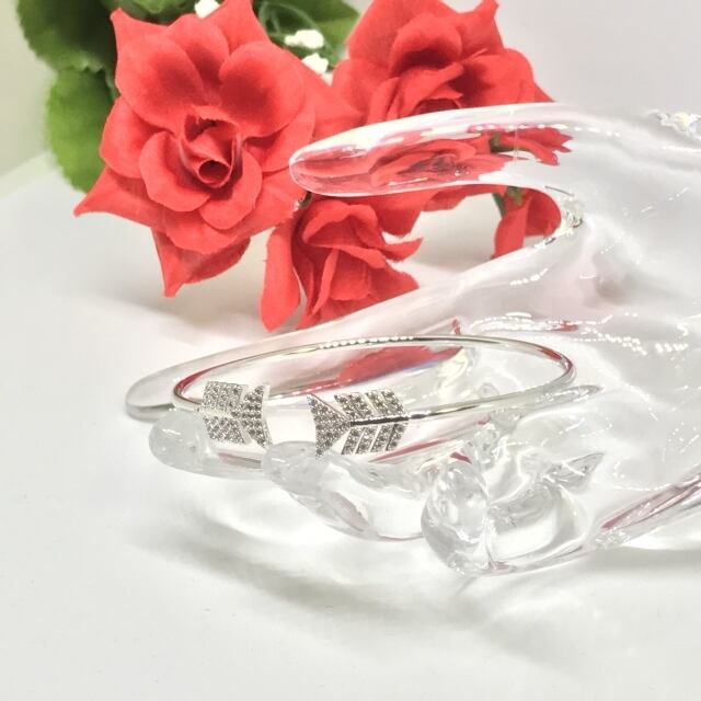 珍しい矢尻のデザインとジルコニアダイヤの輝きは、