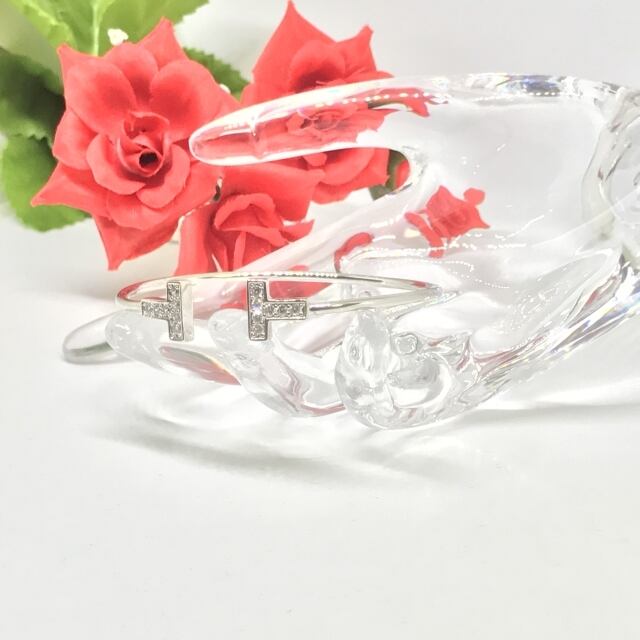 T字オープンバングル 14Kgp/ジルコニアダイヤ ゴールド/ホワイトゴールド【ブレスレット】